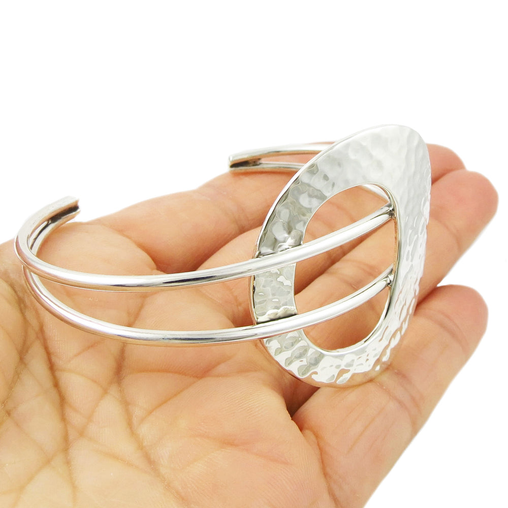 Wide Sterling Silver Hammered Oval Bracelet Cuff
