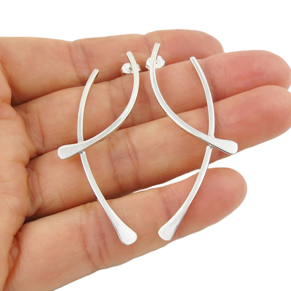 Shop our Mexican Collection of silver earrings including hoops, studs, drop, and dangling styles for women, expertly handcrafted from 925 sterling silver. Featuring luxe mirror-polished and hammered silver earrings in distinctive shapes and contemporary finishes, each pair of our handmade silver earrings showcases exceptional artisan craftsmanship with a modern, vibrant twist.