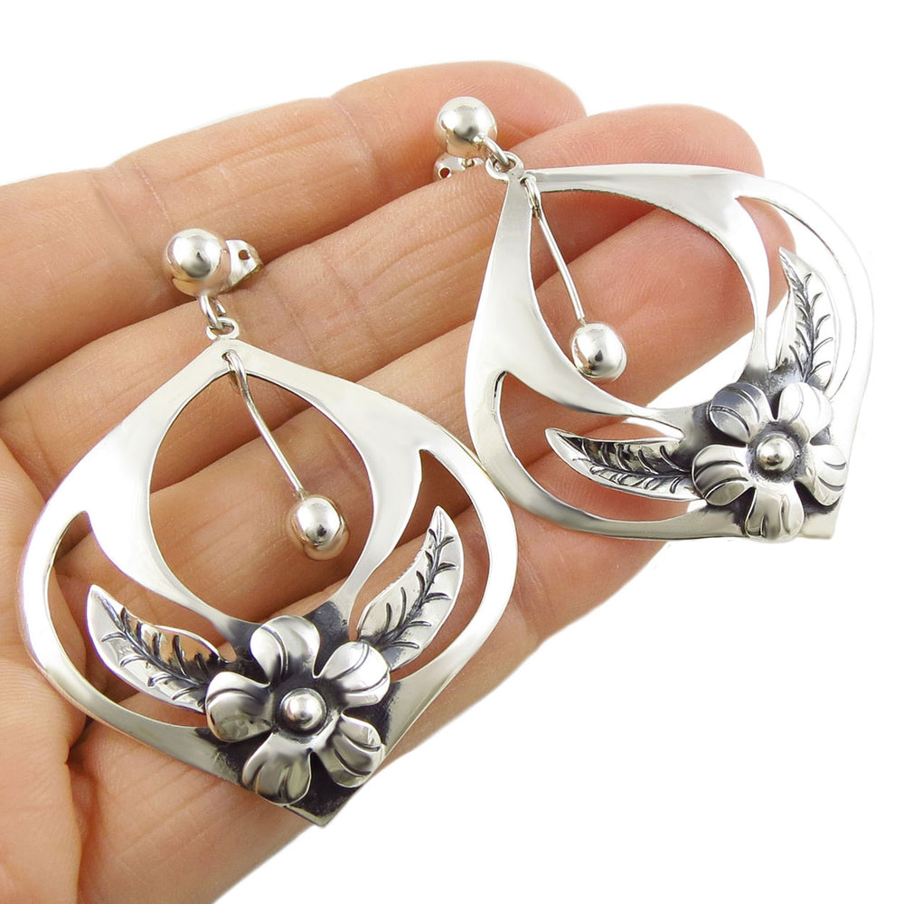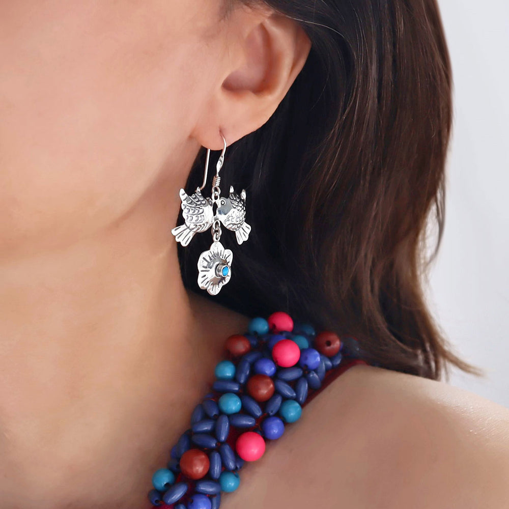 Ladies Silver Earrings with Mexican Flair