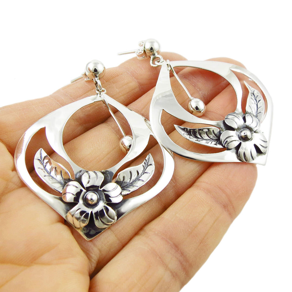 Ladies Silver Earrings with Mexican Flair