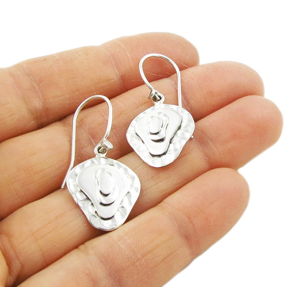 Shop our Mexican Collection of silver earrings including hoops, studs, drop, and dangling styles for women, expertly handcrafted from 925 sterling silver. Featuring luxe mirror-polished and hammered silver earrings in distinctive shapes and contemporary finishes, each pair of our handmade silver earrings showcases exceptional artisan craftsmanship with a modern, vibrant twist.