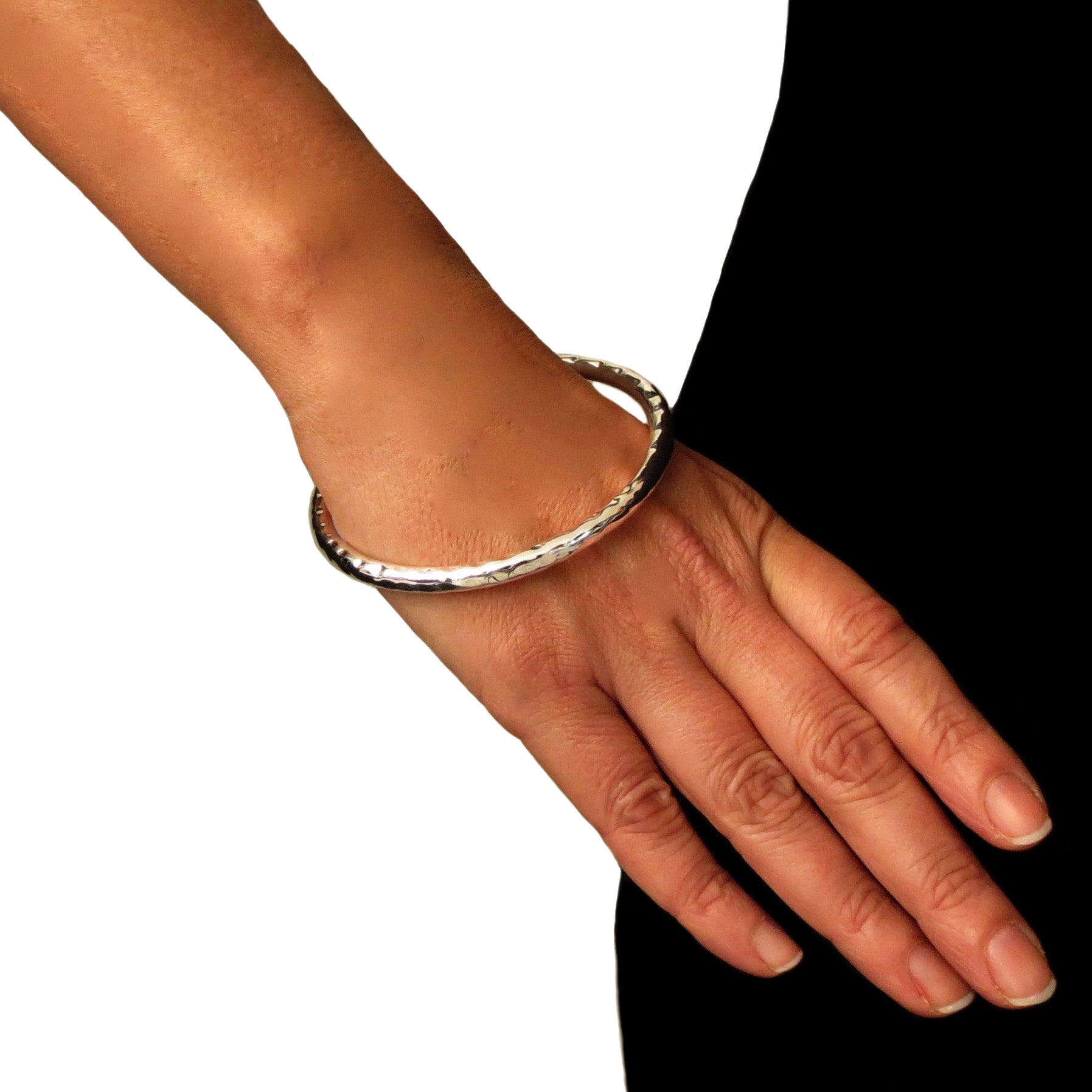 Hammered Circle Bangle Sterling Silver Handwrought Design