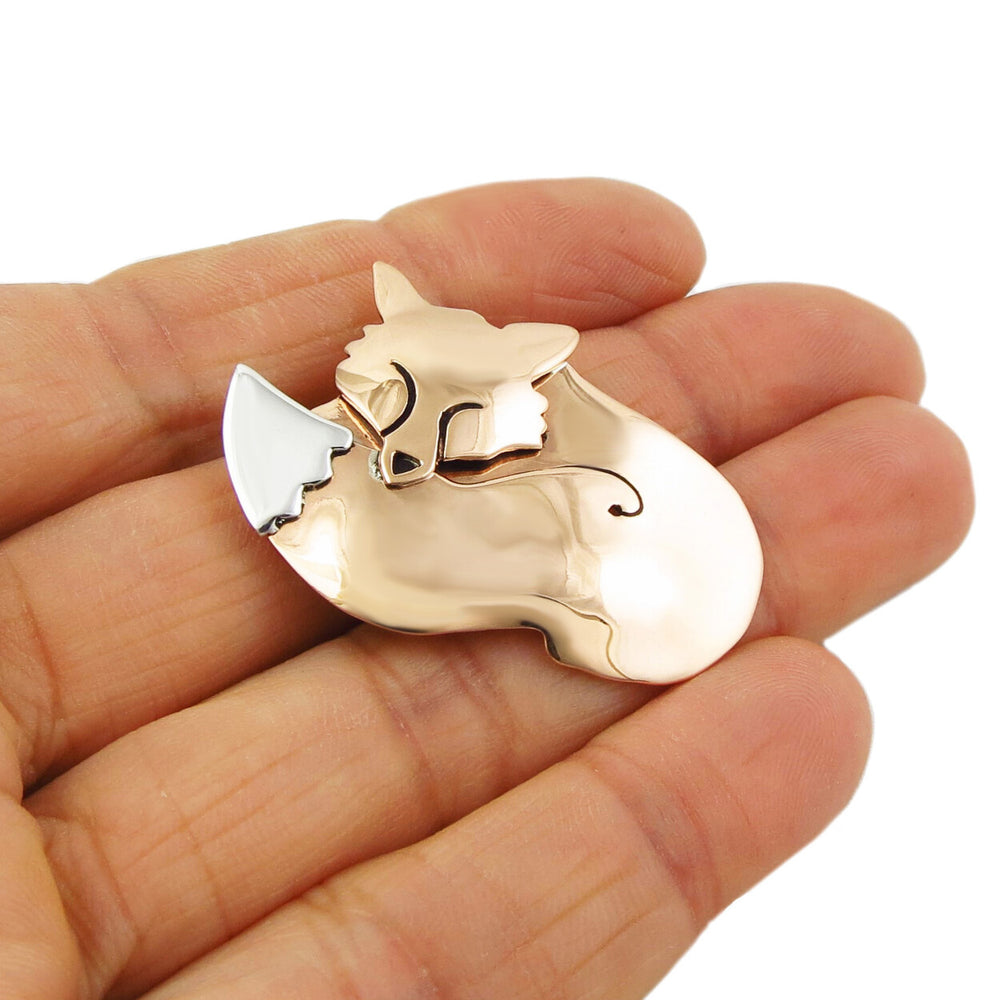 Our charming inquisitive Mr Fox brooch pin is wrought from warm copper and cool silver in a striking contrast of colours.