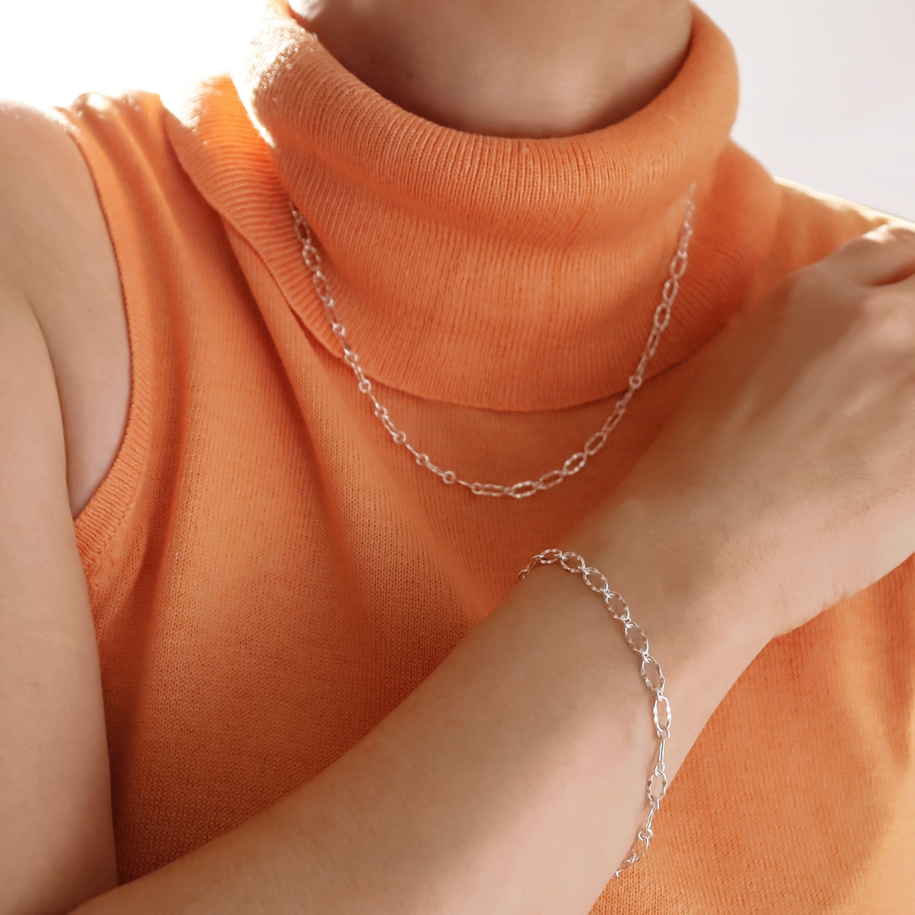 Whether worn as part of a wrist stack or on it’s own, this versatile design is the perfect wrist accessory. Wrought from solid 925 silver, the chain features a delicate hand-hammered finish that catches the light beautifully with every movement of the wrist.