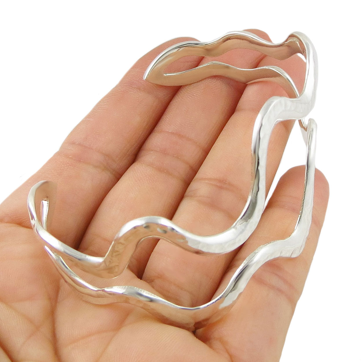Ocean Wave Sterling 925 Silver Hammered Cuff Bracelet