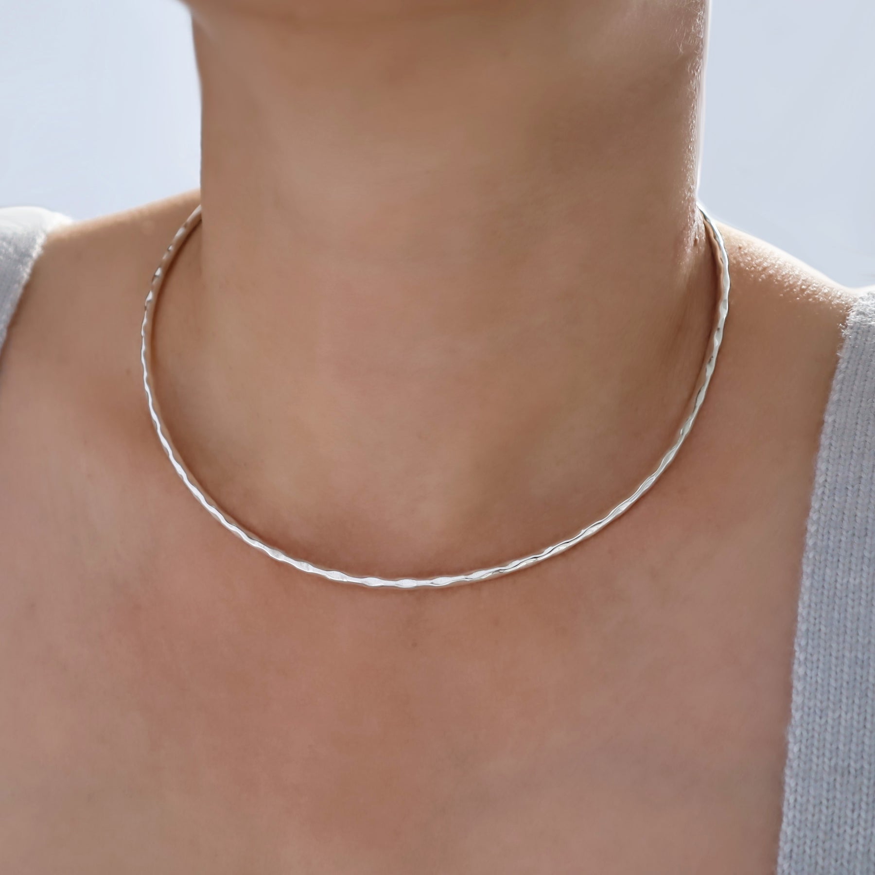 Hammered Sterling 925 Silver Choker Necklace Torc