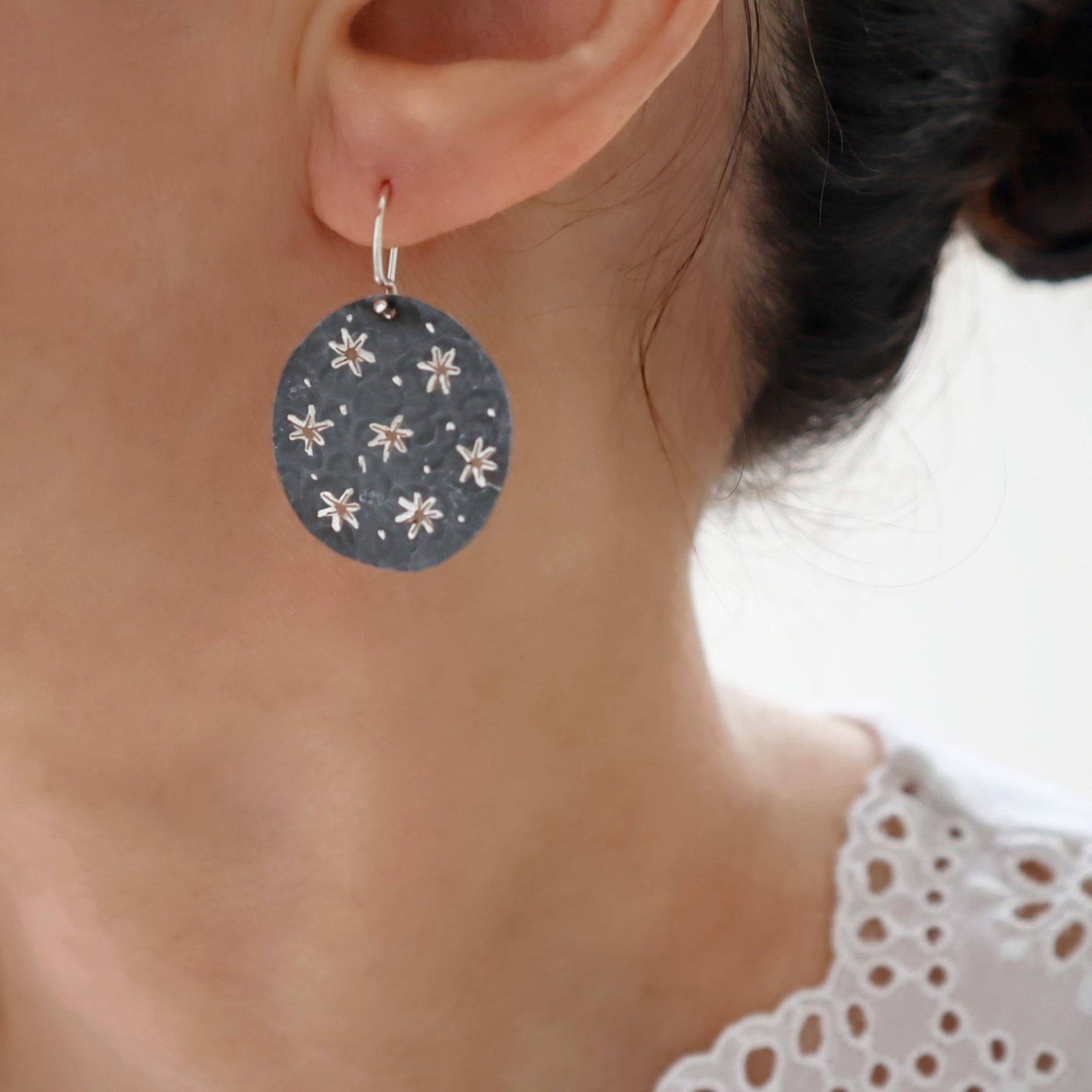 Starry Night Silver Circle Dangle Earrings - Handmade
