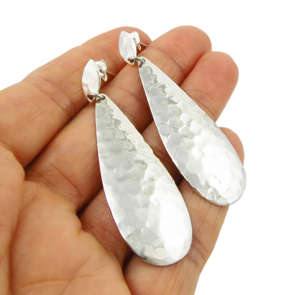 Long Textured Handmade 925 Sterling Silver Drop Earrings
