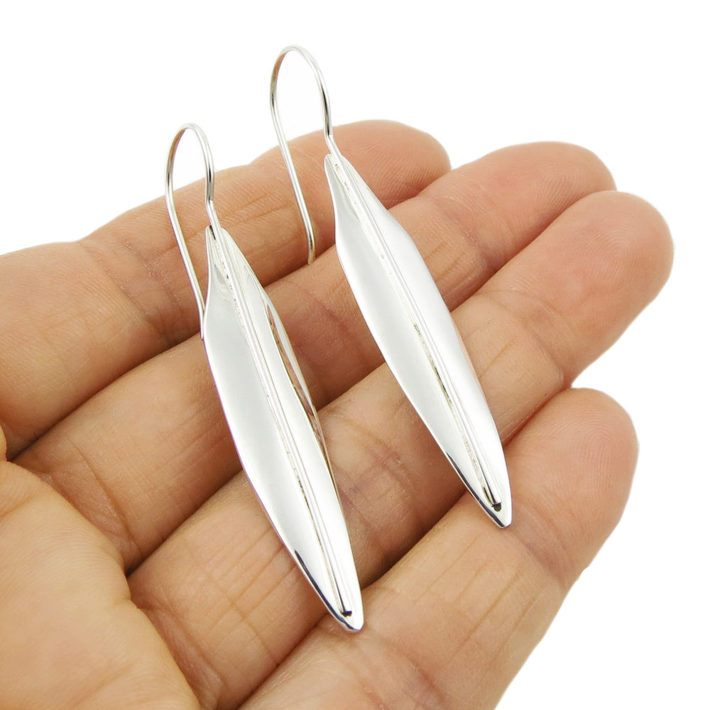 Long Leaf 925 Sterling Silver Curved Drop Earrings