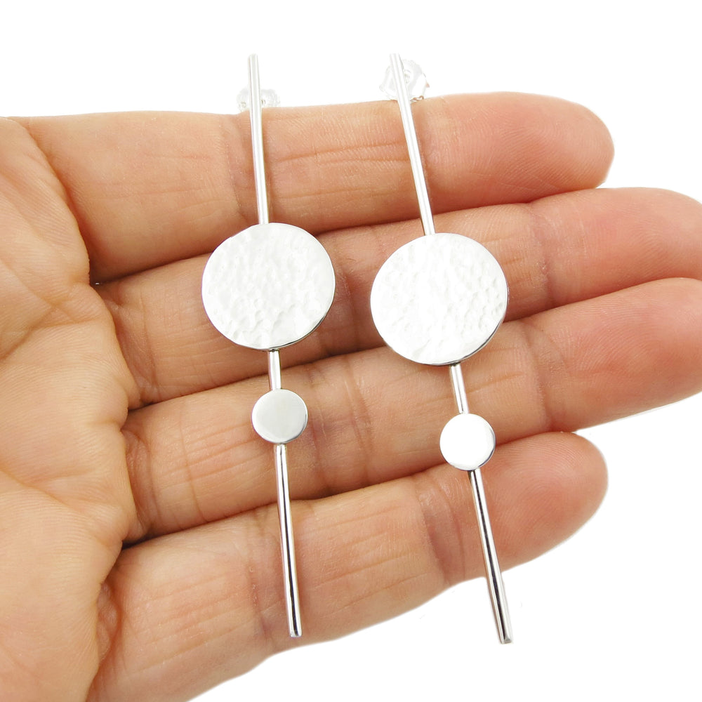 Perfect for anyone who loves the glamour of silver without the weight, these stylish earrings feature an elegant drop decorated with solid discs.