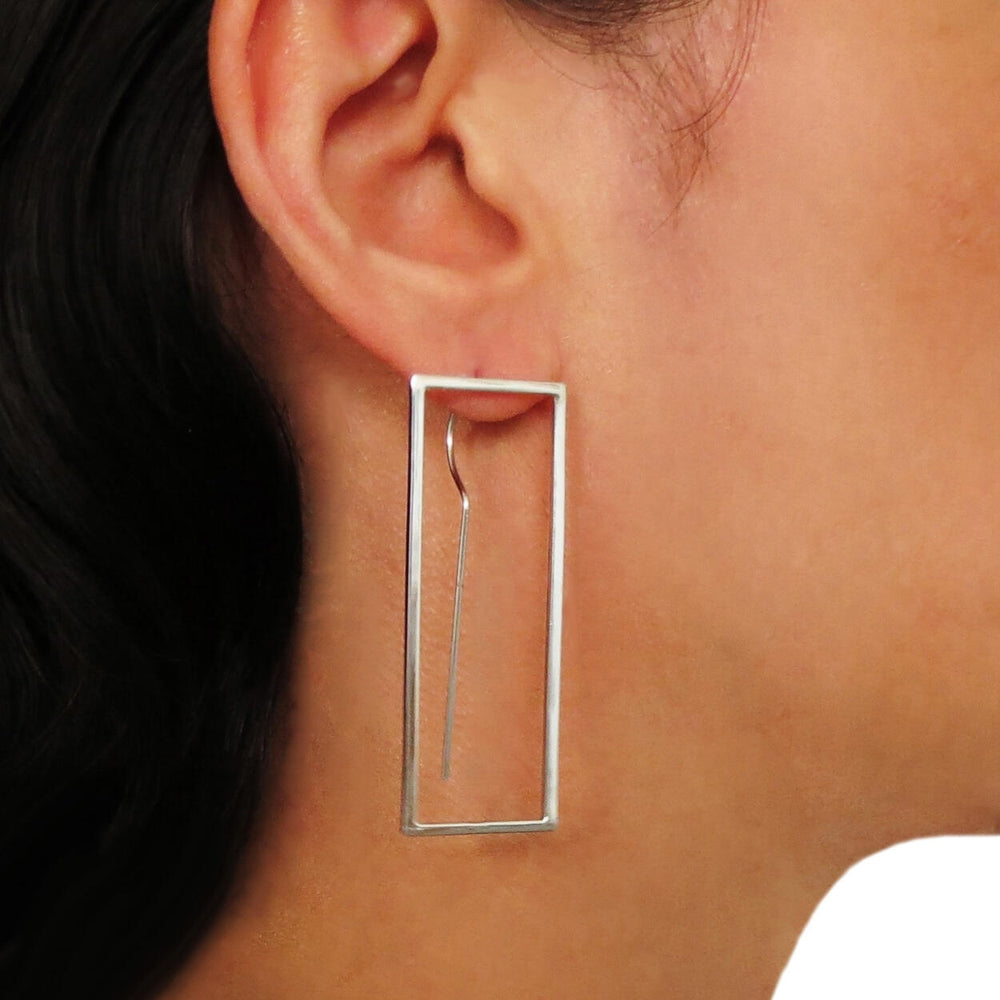 Clean lines, bold simplicity—these open rectangle silver earrings are a standout example of modern jewellery design at its best. Handcrafted from solid 925 sterling silver, each earring features a sleek, open rectangular shape suspended from long, minimalist ear hooks for a style that is effortlessly simple and endlessly versatile.