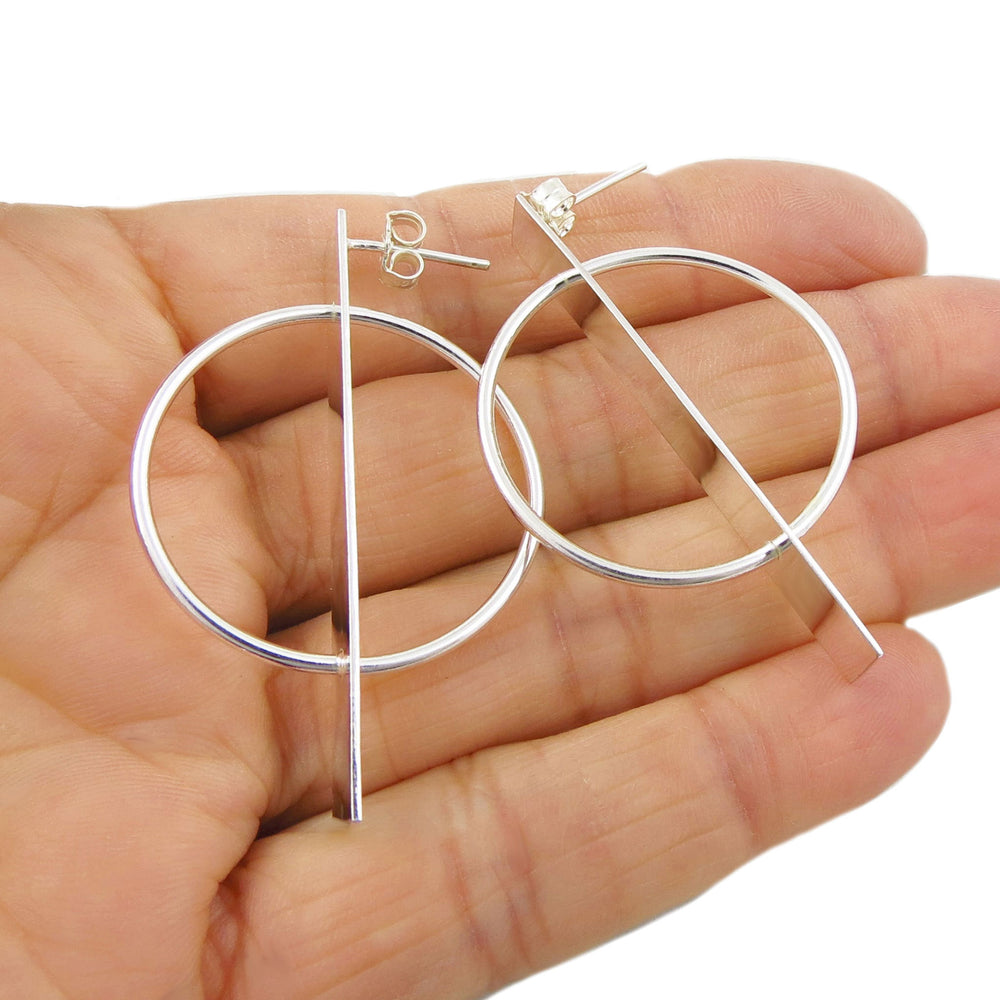 The perfect mix between hoops and stick drops, our minimalist 925 silver drop earrings are wrought from solid sterling silver.