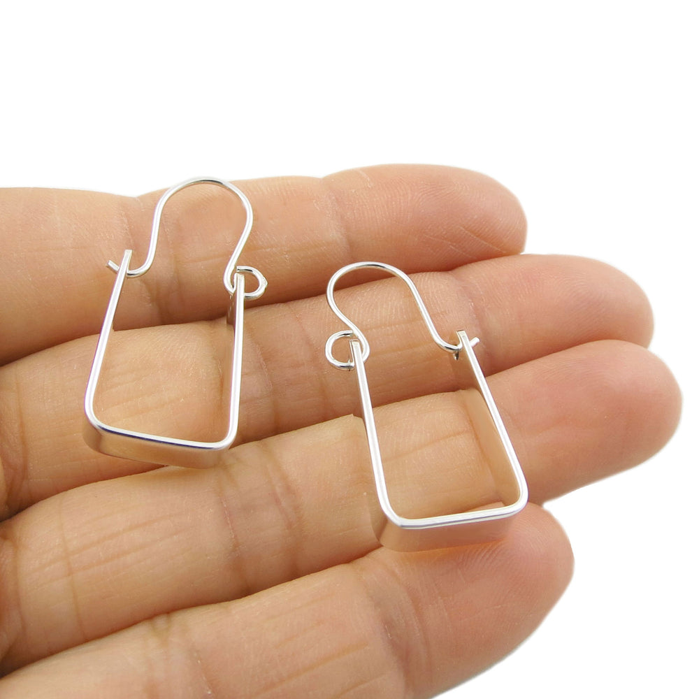 Angled rectangles hang on long curved hooks in our minimalist hoop earrings that are wrought from solid 925 silver. Long yet lightweight, these modern drops are the perfect desk to dinner accessory.