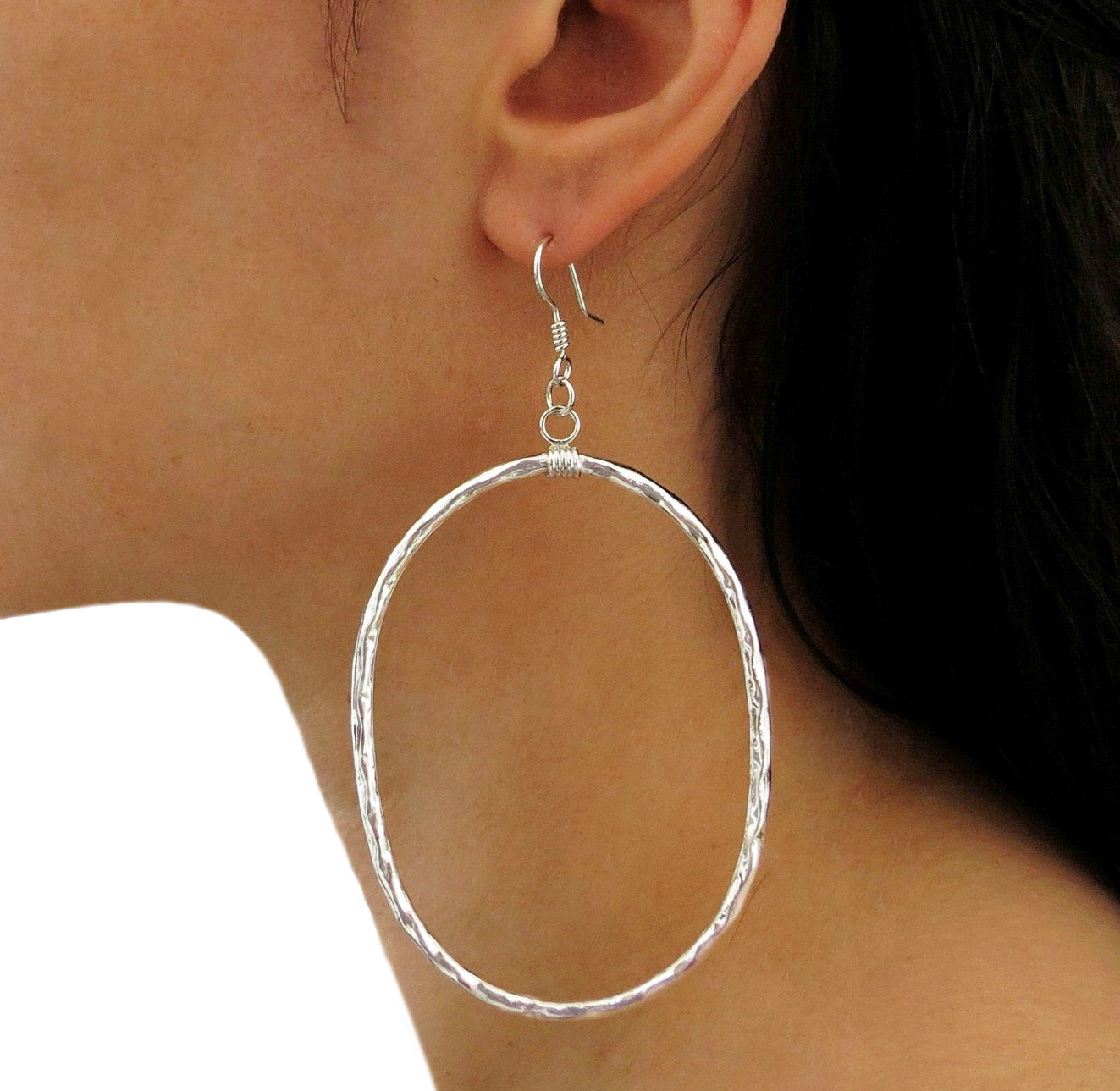 Sterling Silver Hammered Oval Hoop Earrings