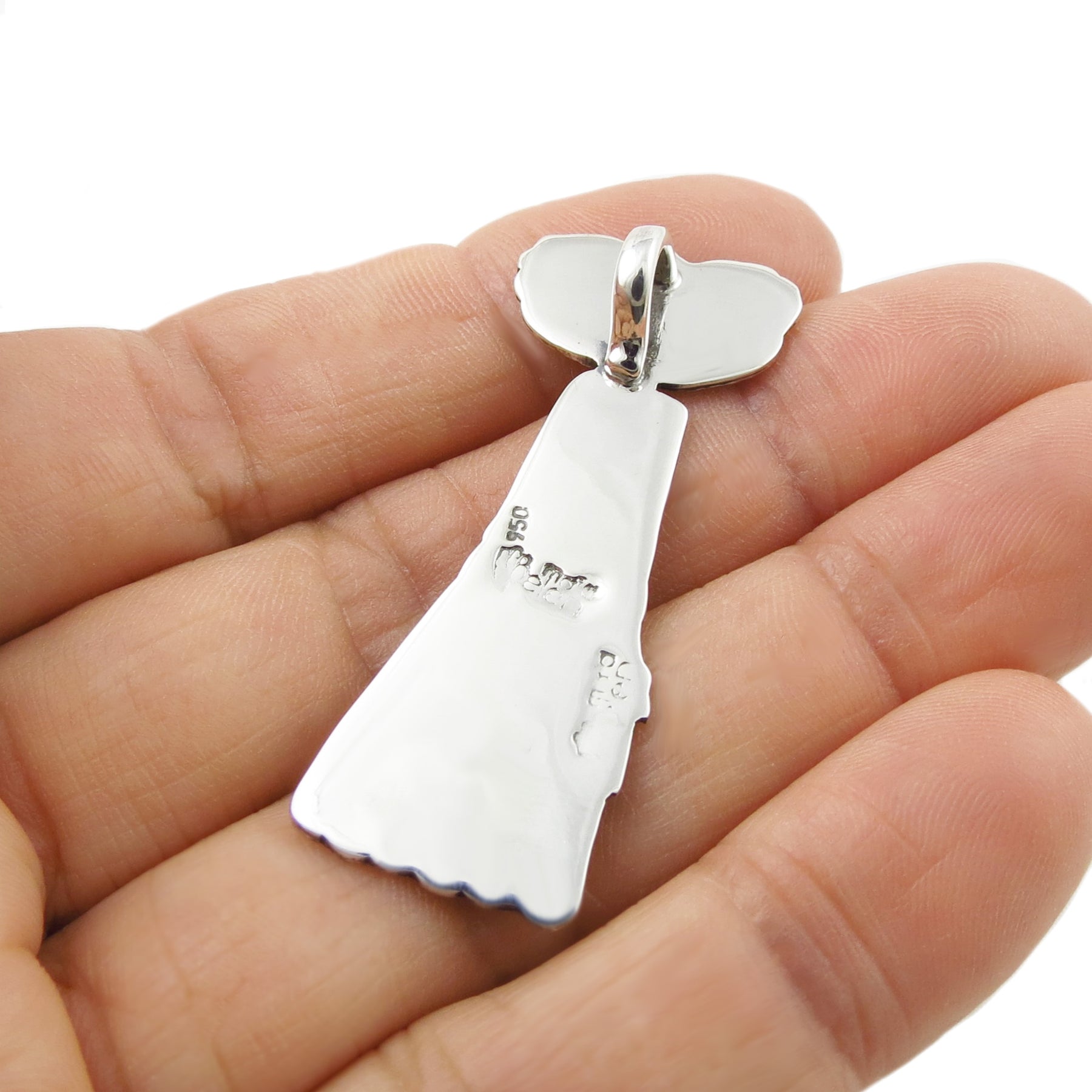 Is there any symbol more iconic for the Mexican Day of the Dead than the dapper lady skeleton in her wide-brimmed hat? Hand-wrought by the renowned silversmith Maria Belen Nilson, our delightful skeleton lady sterling silver pendant necklace features a large Catrina finished in polished and blackened antiqued silver in a dramatic contrast of light and dark.