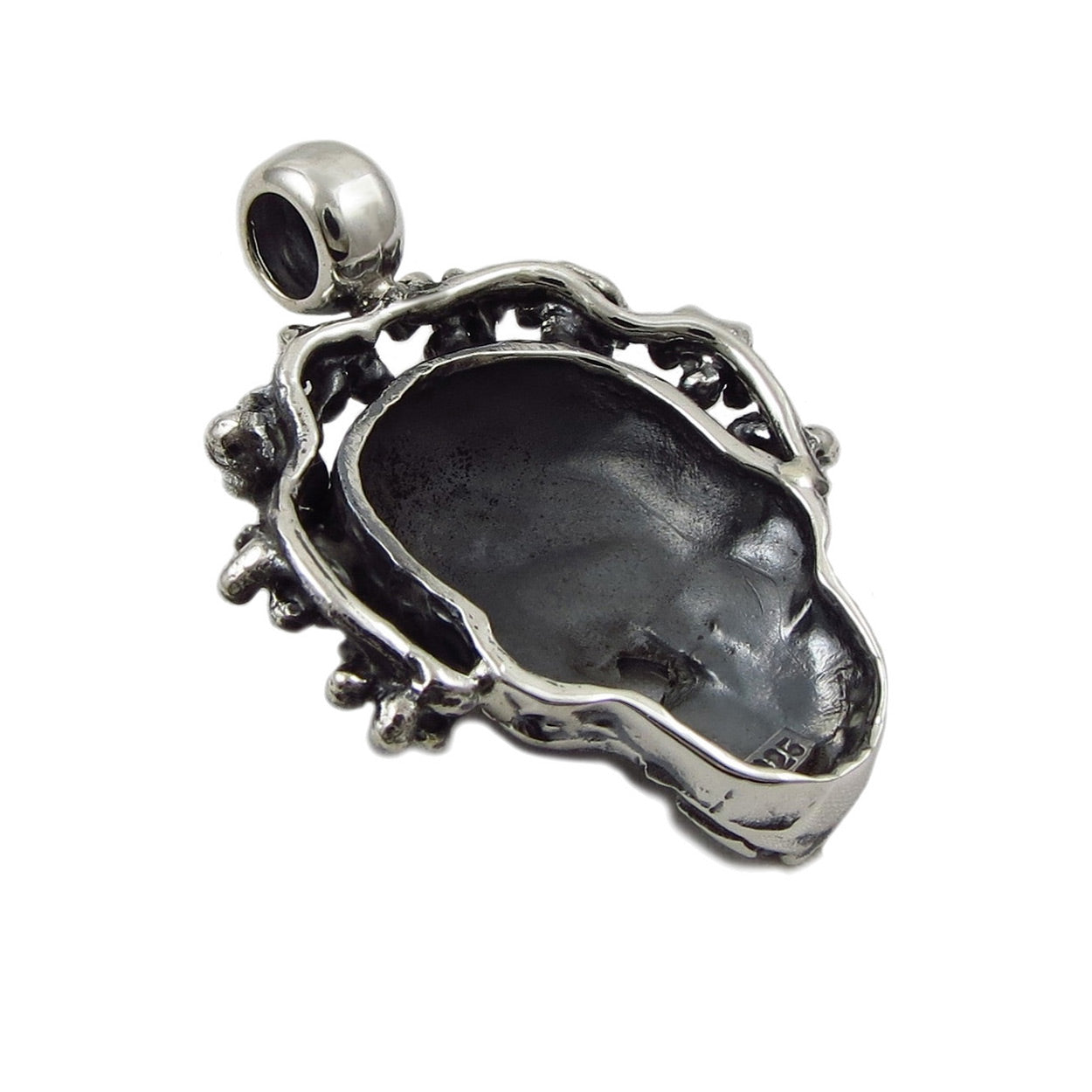 A striking Catrina skull is decorated with a halo of flowers in this most Mexican of designs. With flowers for eyes our unique Day of the Dead sugar skull is wrought from sterling silver with a blackened antiqued finish.